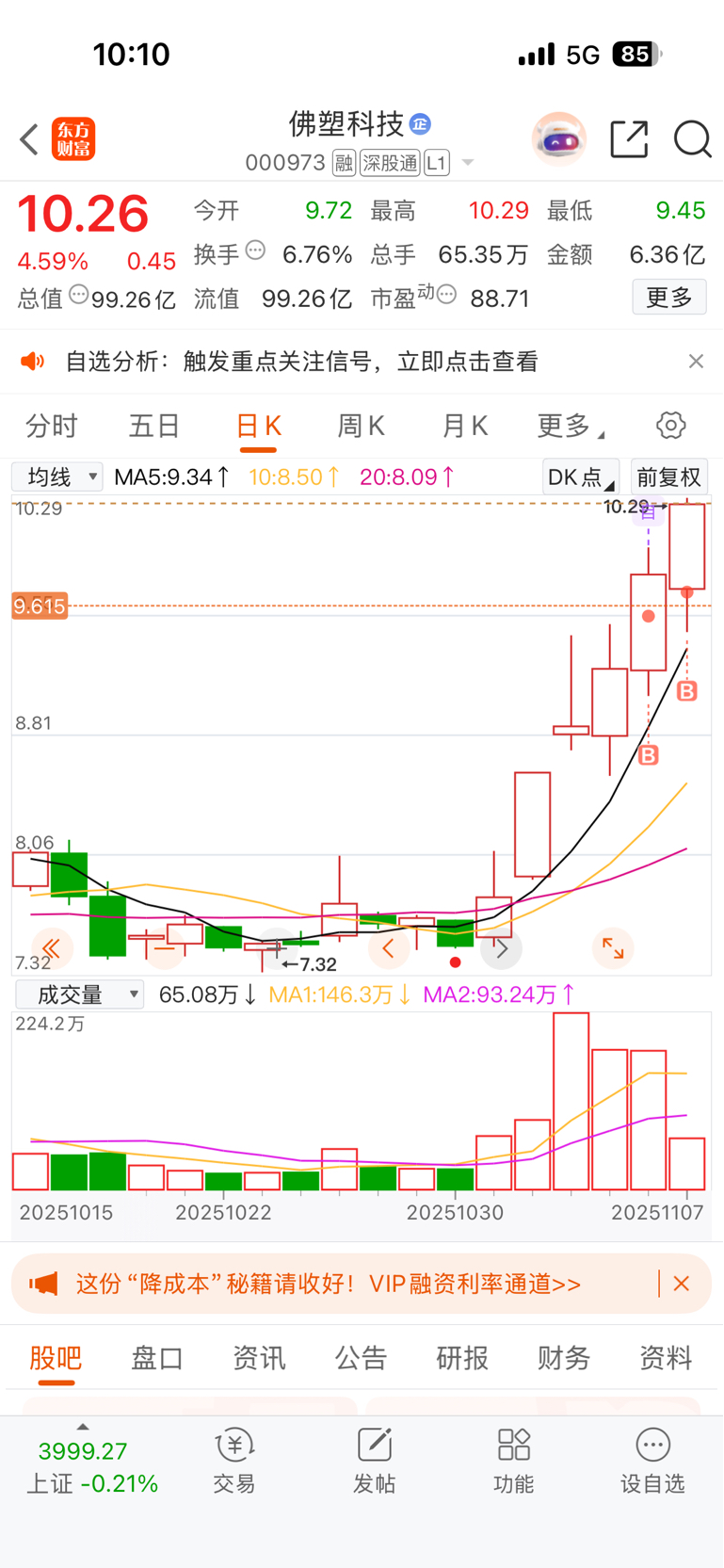 $佛塑科技(SZ000973)$ 兄弟们,涨停以后三连阳称之为喜鹊闹梅,直接加仓干