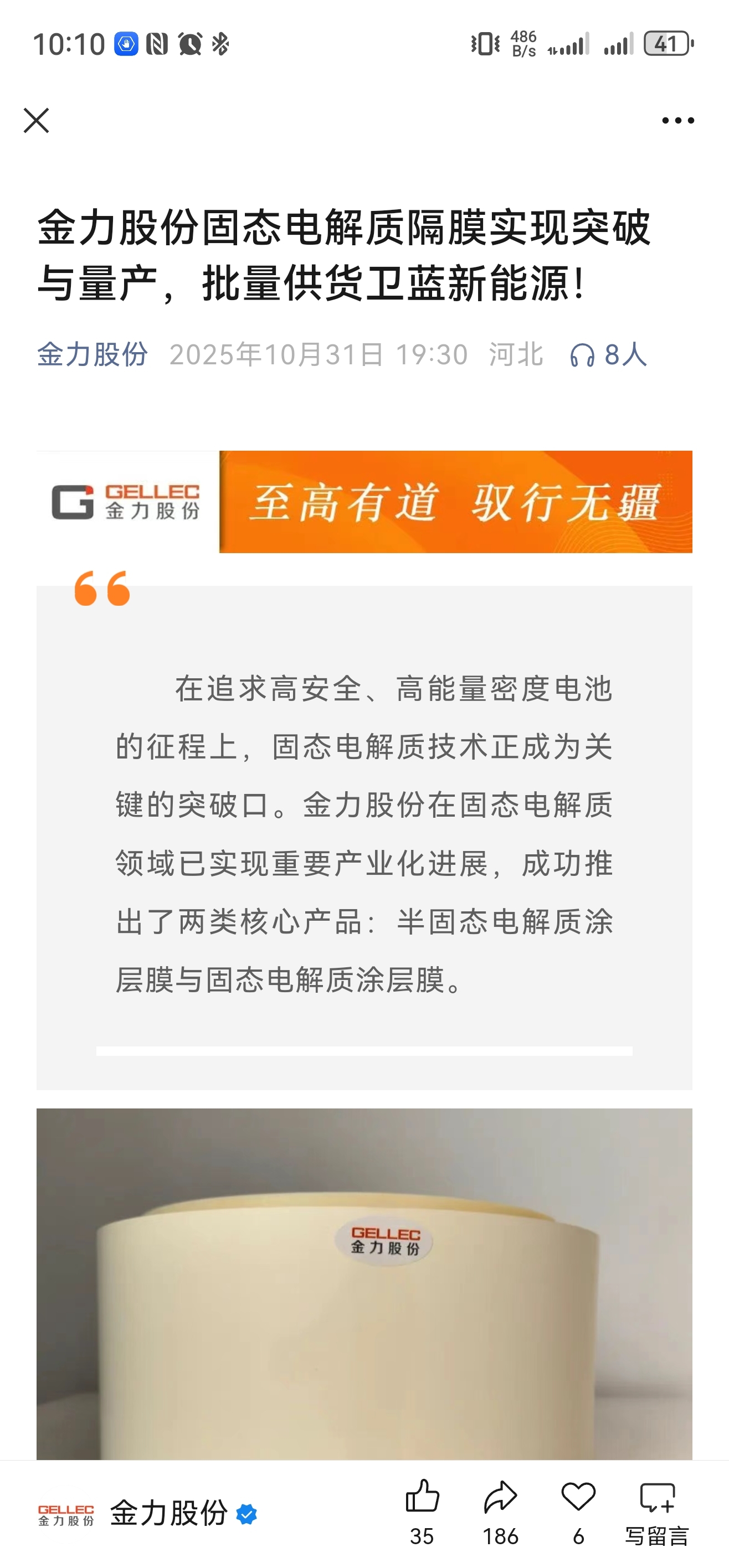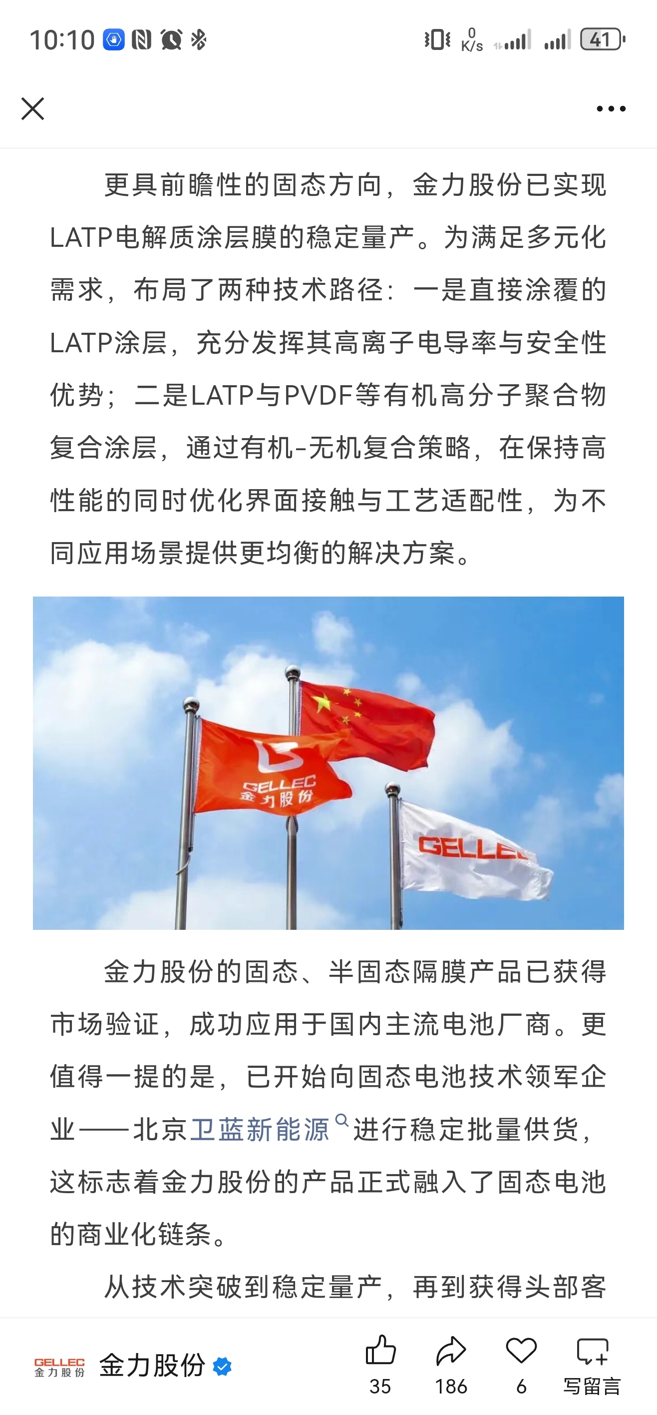 二是金力股份已经融入固态电池产业链,已经开始量产赚钱了。