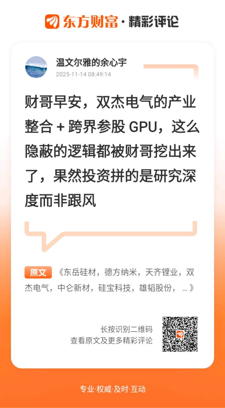 每次分享都有用!$佛塑科技(SZ000973)$$中利集团(SZ002309)$$沧州明珠(SZ002108)$//@温文尔雅的余心宇 :财哥早安,双杰电气的产业整合 + 跨界参股 GPU,这么隐蔽的逻辑都被财哥挖出来了,果然投资拼的是研究深度而非跟风