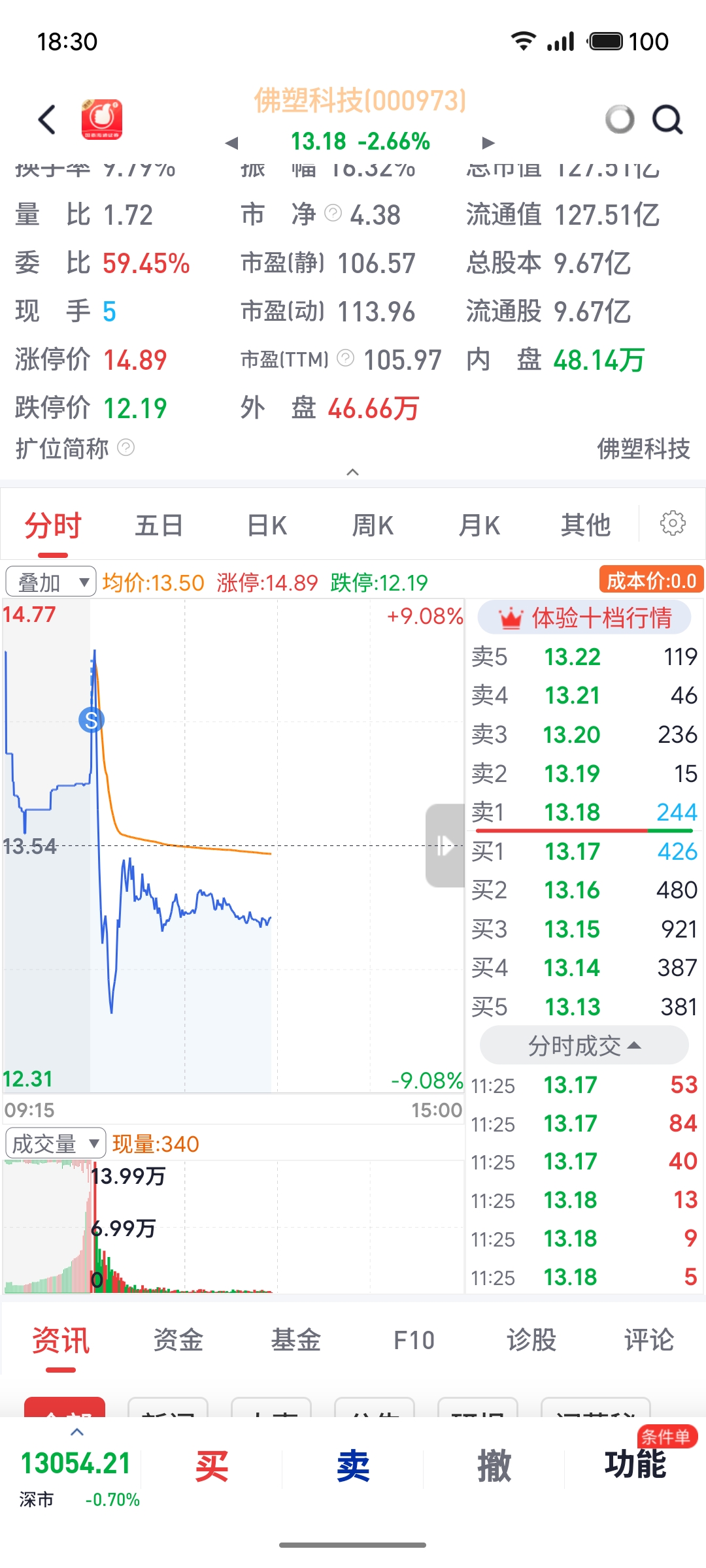 $佛塑科技(SZ000973)$ 第一次卖怎么准