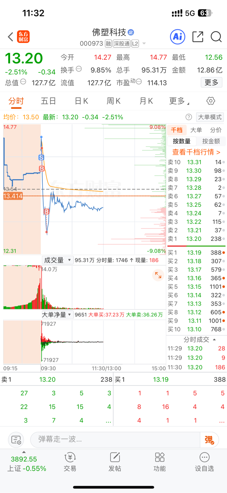 $佛塑科技(SZ000973)$ 以为要涨停又买回去