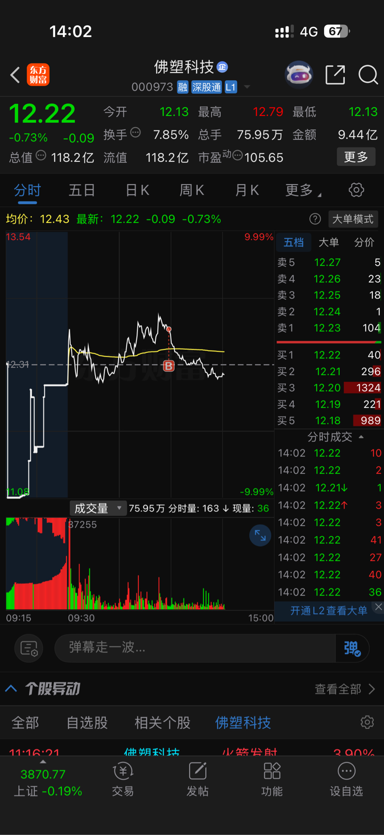 $佛塑科技(SZ000973)$ 都怪我,一买就跌,对不起大家了
