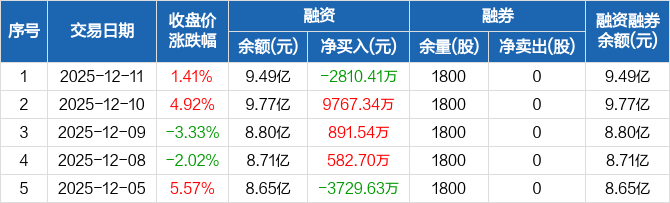 佛塑科技:融资净偿还2810.41万元,融资余额9.49亿元(12-11)