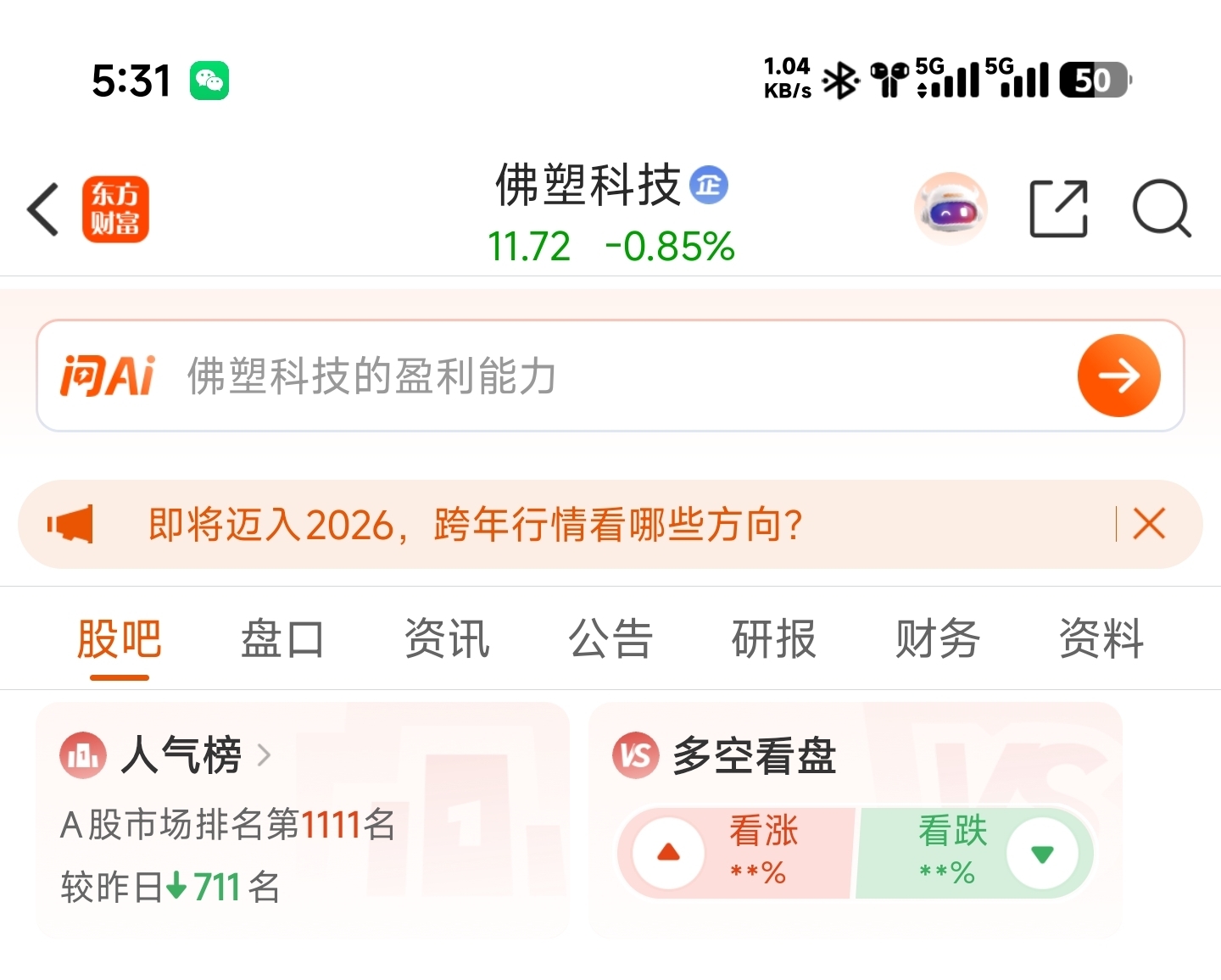 $佛塑科技(SZ000973)$ 人气下滑这么厉害