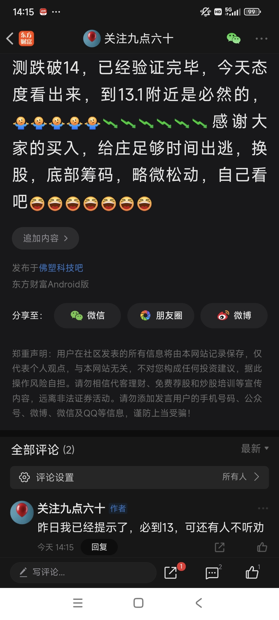 温馨提示: 1.根据《证券法》规定,禁止编造、传播虚假信息或者误导性信息,扰乱证券市场;2.用户在本社区发表的所有资料、言论等仅代表个人观点,与本网站立场无关,不对您构成任何投资建议。用户应基于自己的独立判断,自行决定证券投资并承担相应风险。《东方财富社区管理规定》