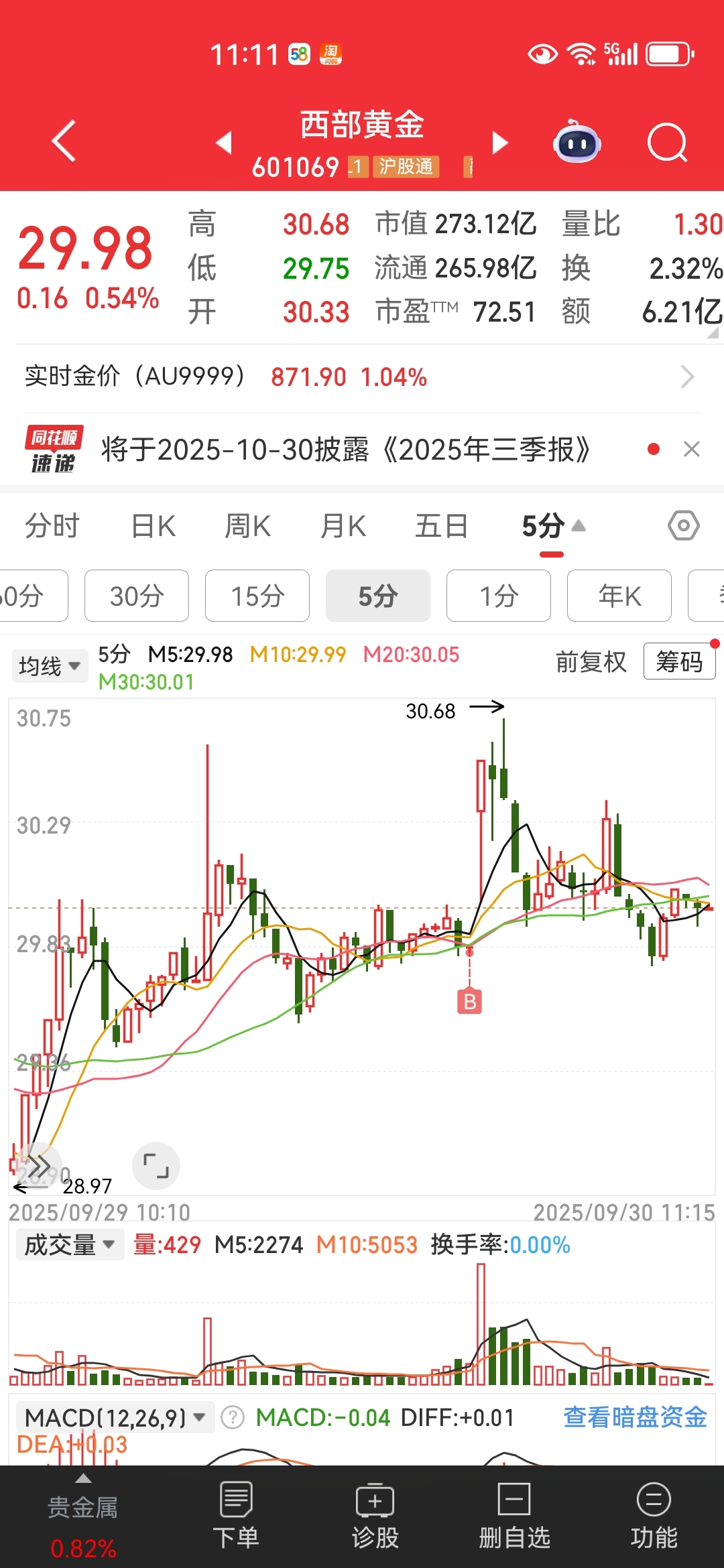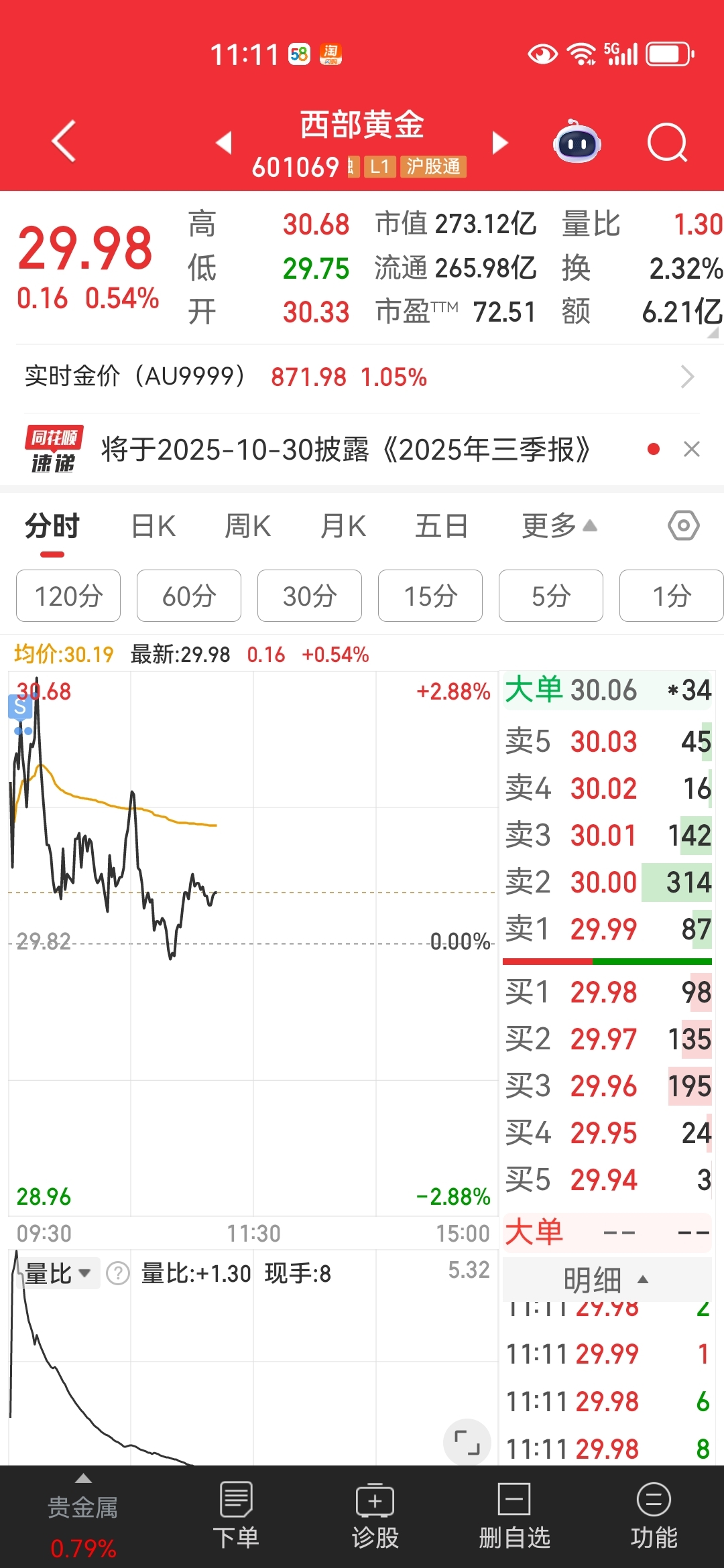 $西部黄金(SH601069)$  昨天尾盘进的,今天高位走了