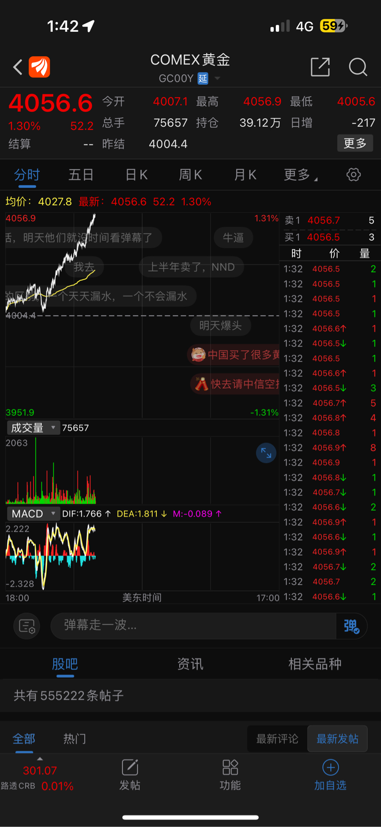 $山金国际(SZ000975)$ 黄金发疯了 10-8中午行情截图