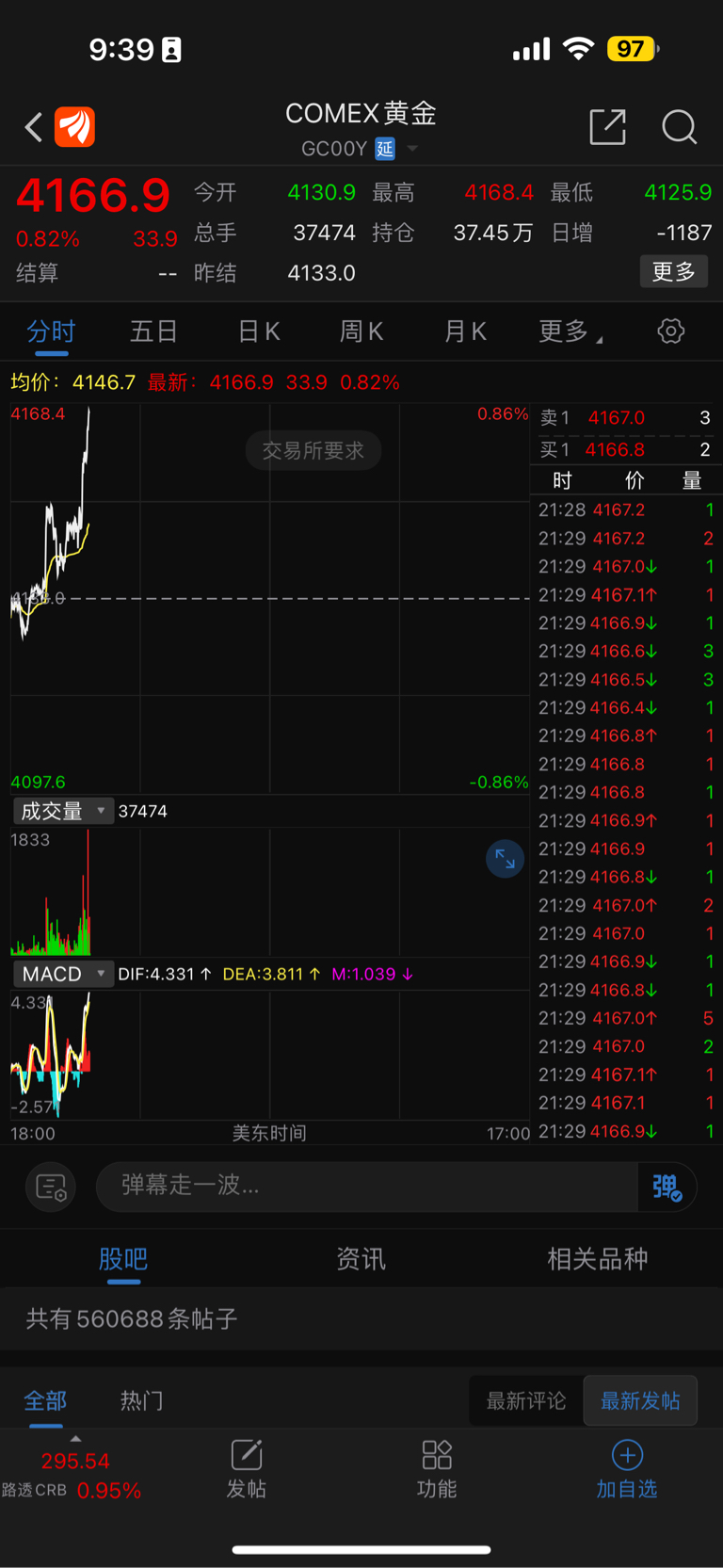 $山金国际(SZ000975)$ 黄金疯了,这一秒还在疯狂新高,这是要飙到5000美元吗