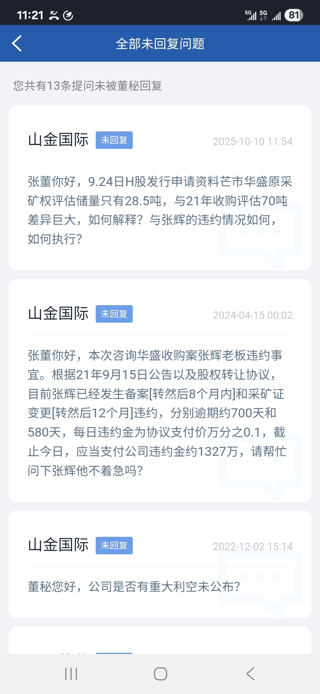 $山金国际(SZ000975)$ 董秘已经不敢回消息了