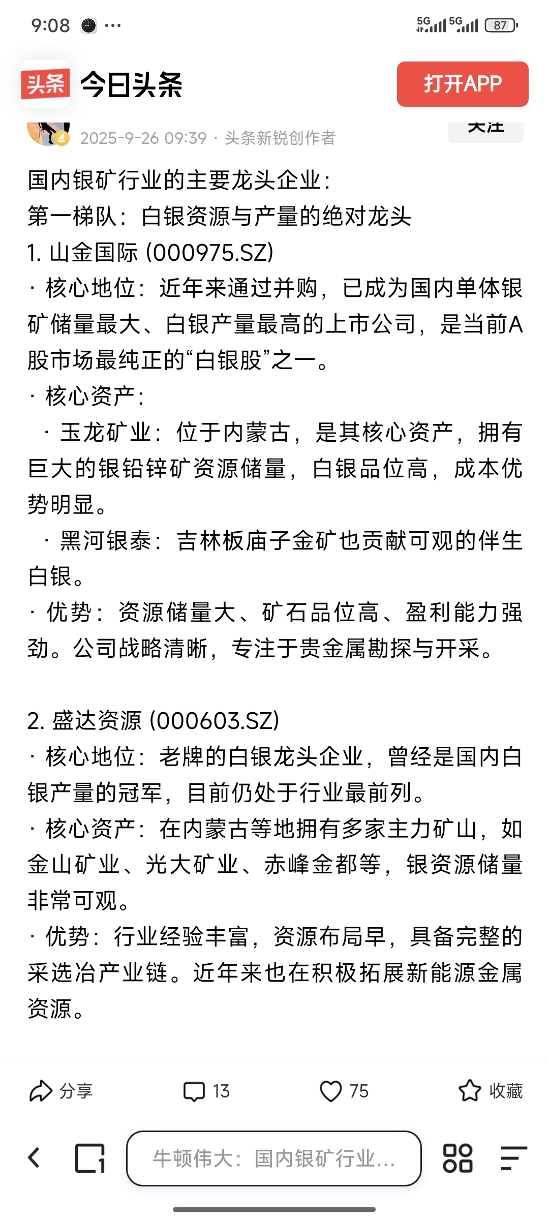 $山金国际(SZ000975)$