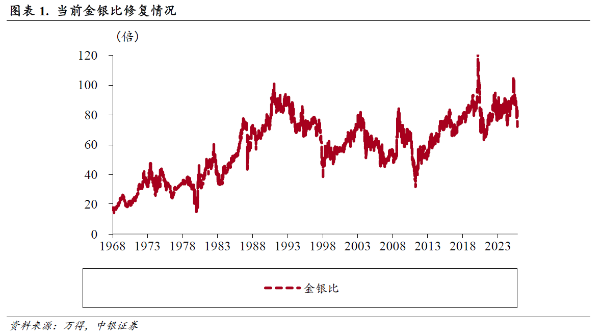 德邦证券表示:我们认为白银价格的持续上行或与金银比的回升相关。随着前期黄金价格持续上行,金银比被不断拉大,2025年6月金银比已扩大至100以上,而伴随黄金价格开始盘整,白银价格逐步启动修复。截至12月9日,金银比约为71.7,已较前期高点出现明显回落,但相比长期均值62.9仍有进一步修复空间。