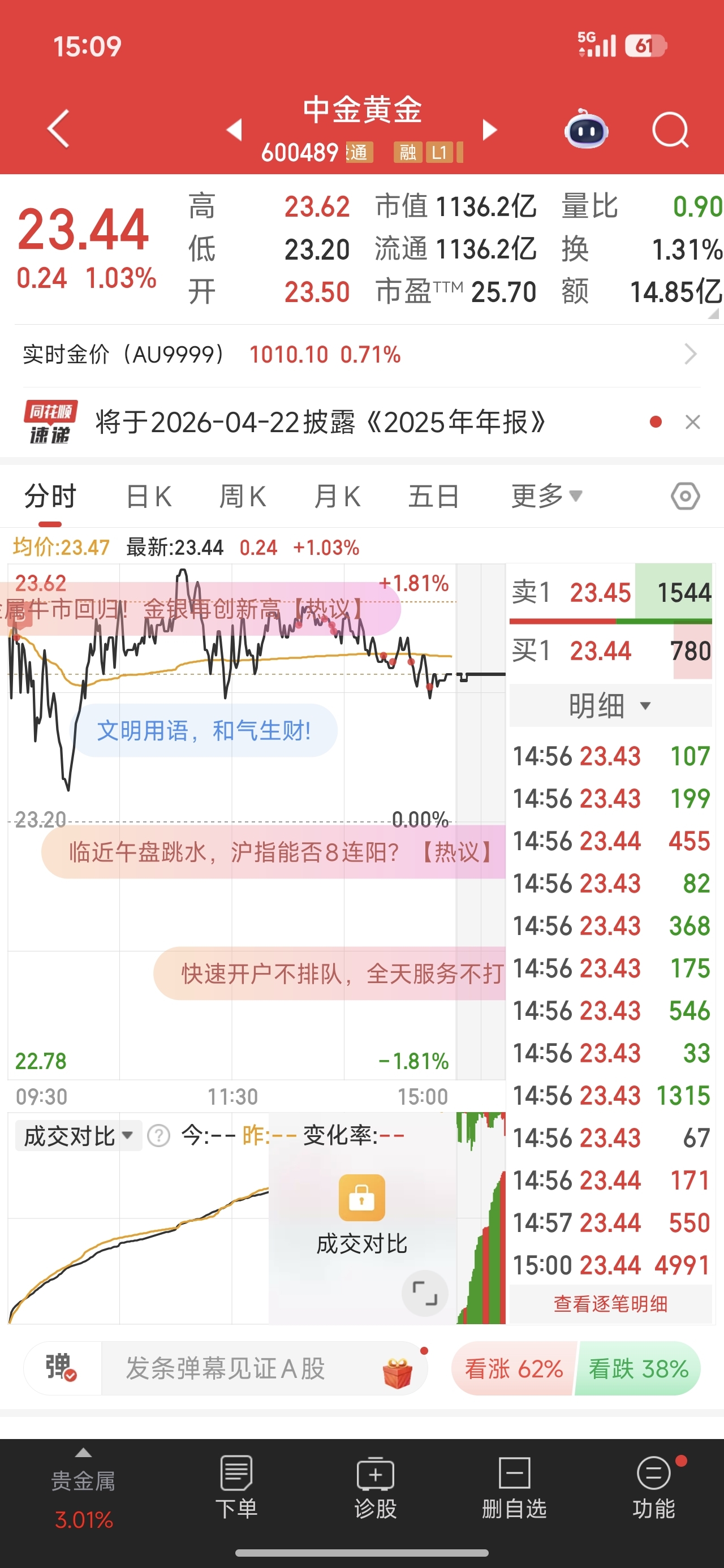 感谢山金国际主力,让我有从头卖到尾的机会,也感谢中金黄金主力,让我有从头买到尾的