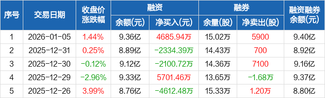 山金国际:融资净买入4685.94万元,融资余额9.36亿元(01-05)
