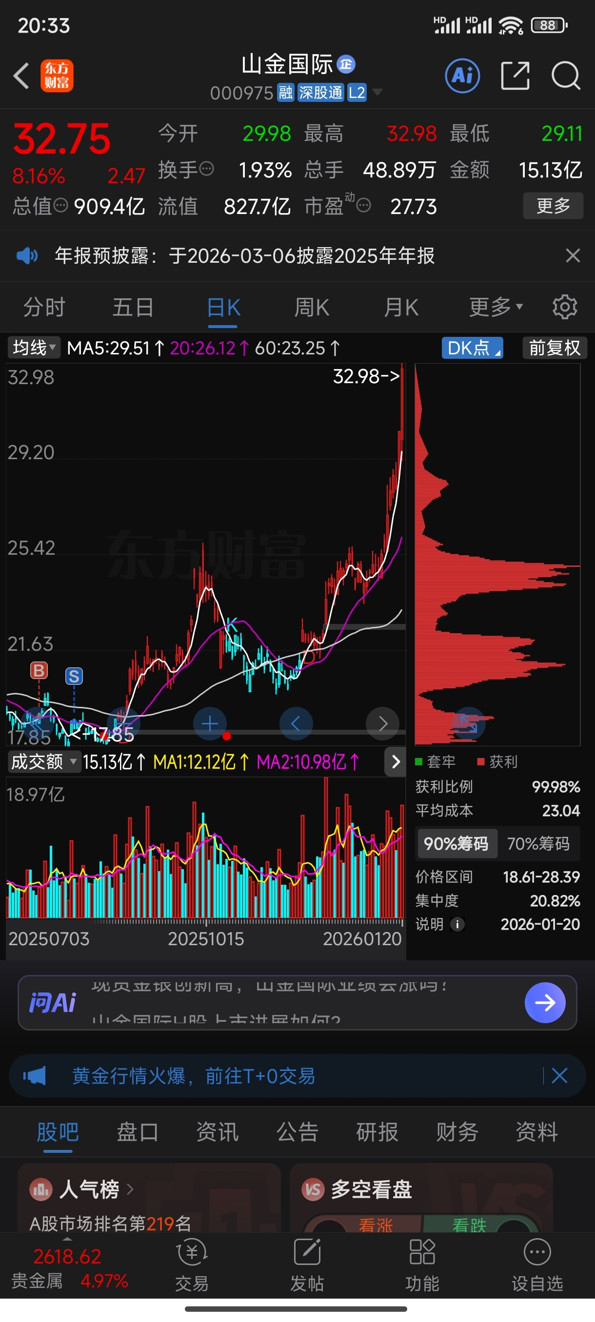$山金国际(SZ000975)$ 哈哈哈哈