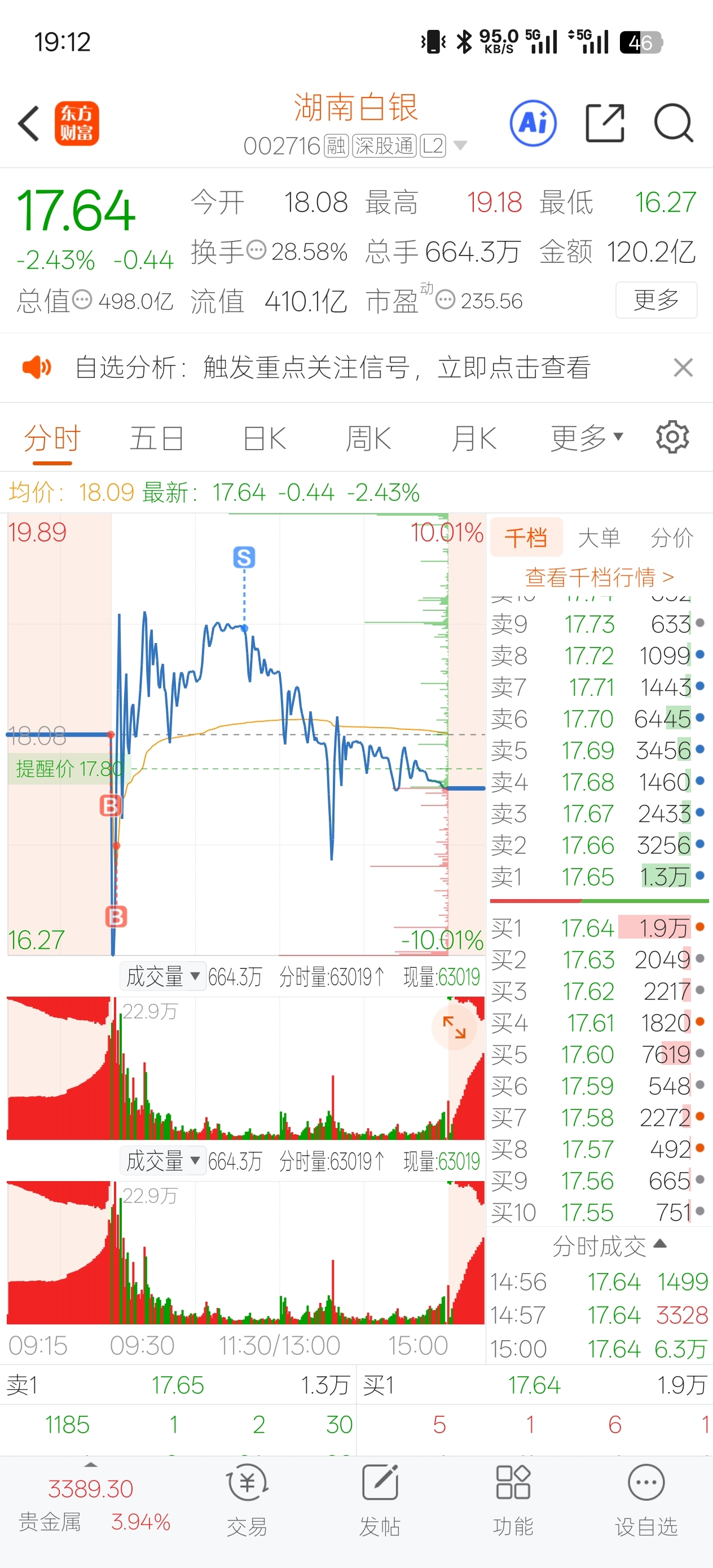 $山金国际(SZ000975)$ $西部黄金(SH601069)$ $湖南白银(SZ002716)$ 今天操作,菜鸡山金,太弱了,早上没跑是败笔