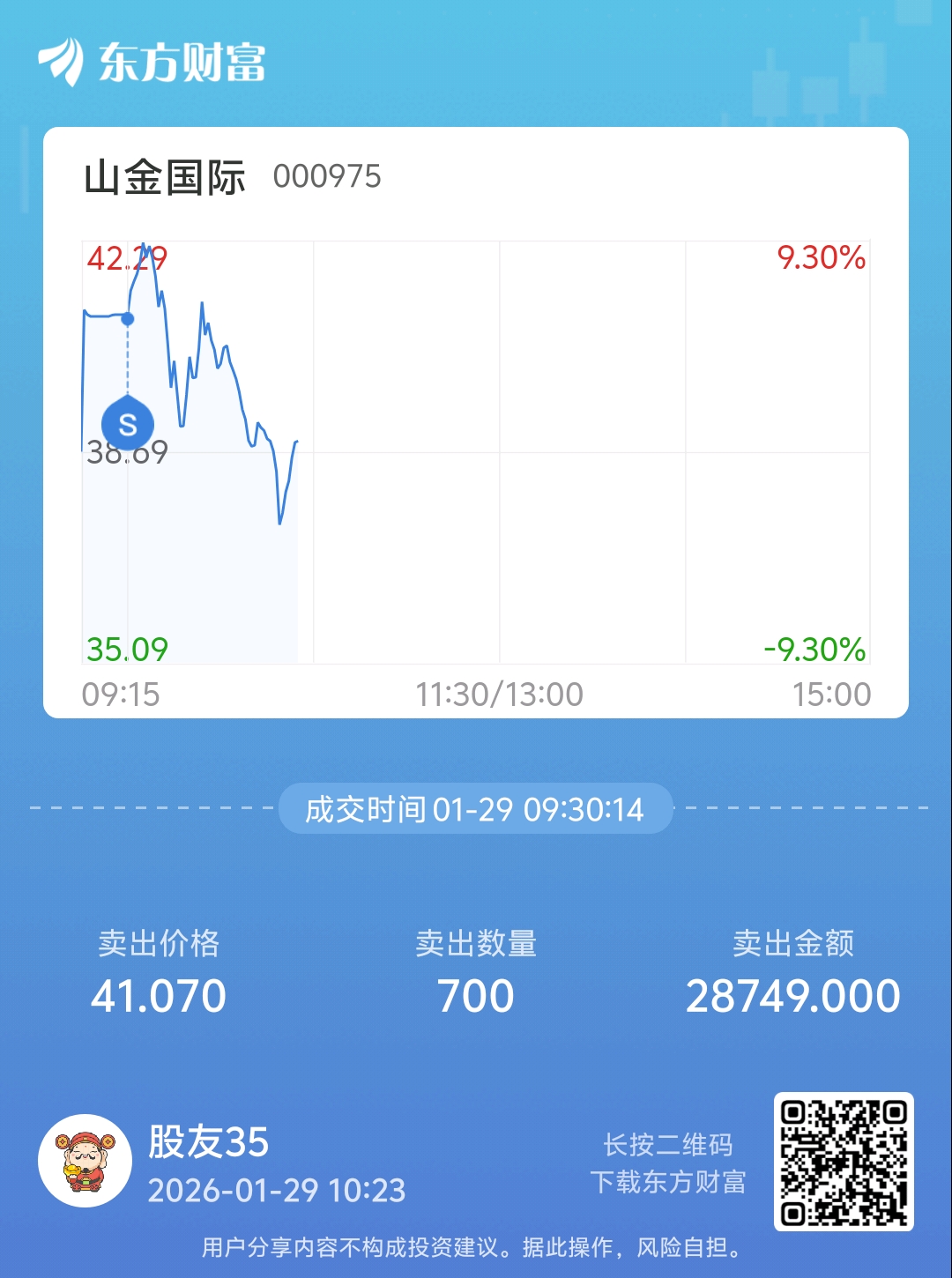 温馨提示: 1.根据《证券法》规定,禁止编造、传播虚假信息或者误导性信息,扰乱证券市场;2.用户在本社区发表的所有资料、言论等仅代表个人观点,与本网站立场无关,不对您构成任何投资建议。用户应基于自己的独立判断,自行决定证券投资并承担相应风险。《东方财富社区管理规定》