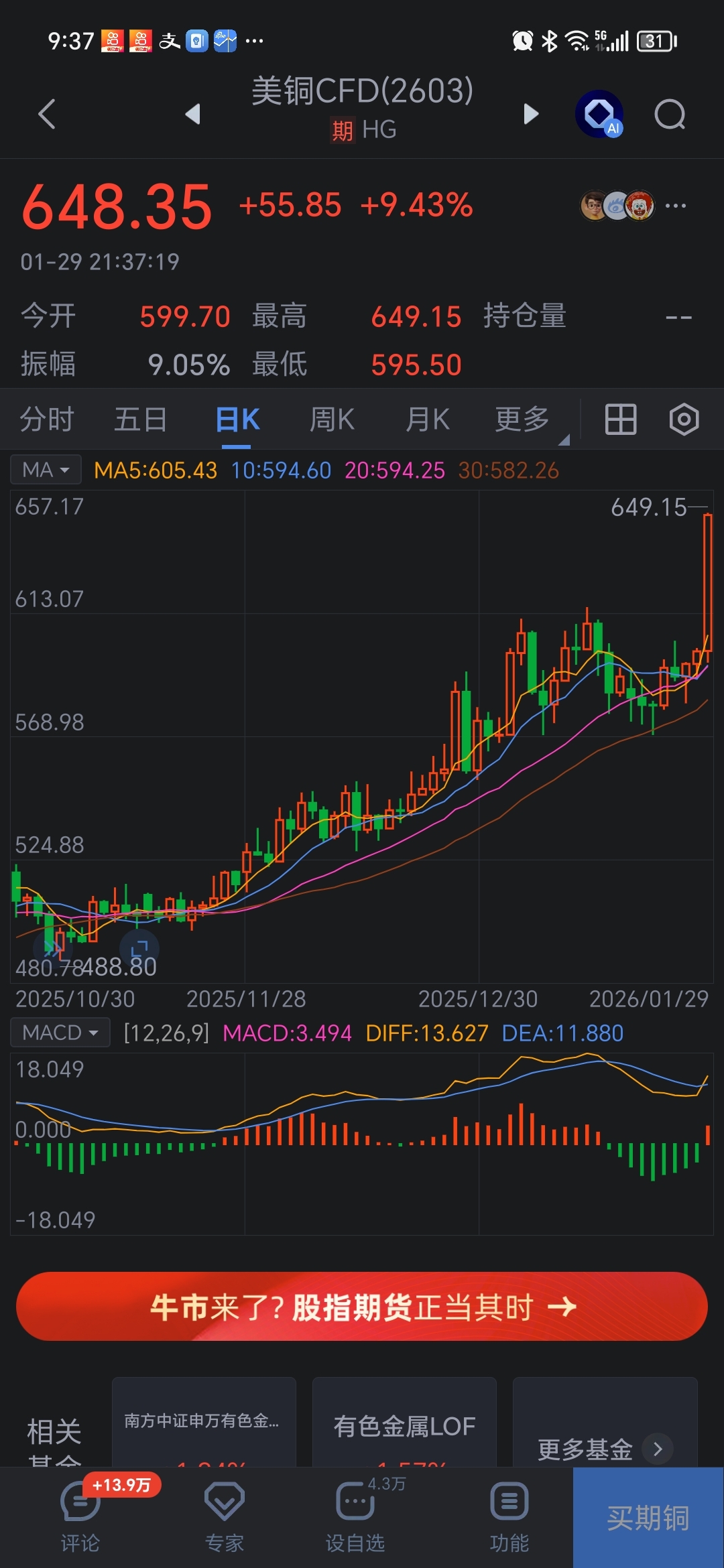 $山金国际(SZ000975)$ 铜又起飞了,明天又该跌了