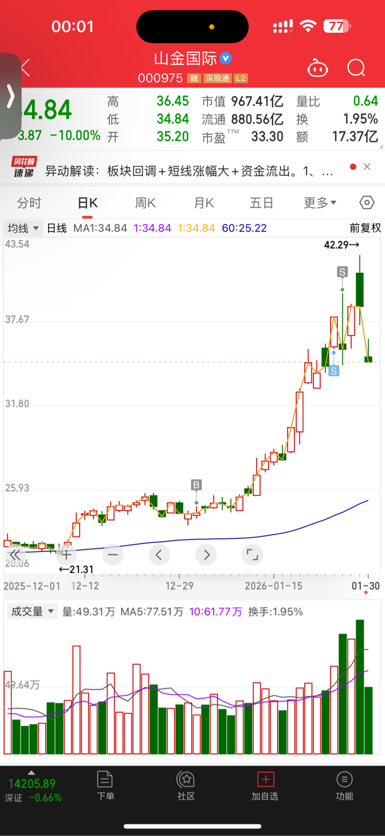 $山金国际(SZ000975)$ 清仓走人