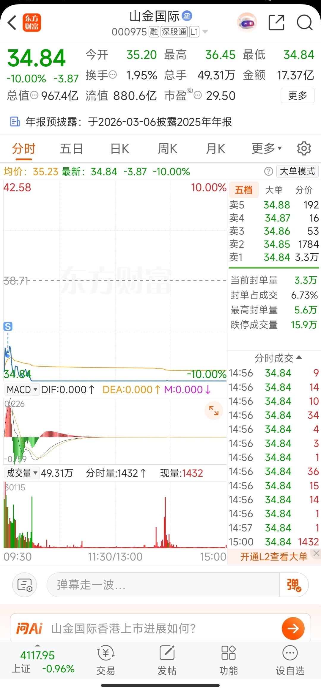 $山金国际(SZ000975)$ 还好早上狠心割了