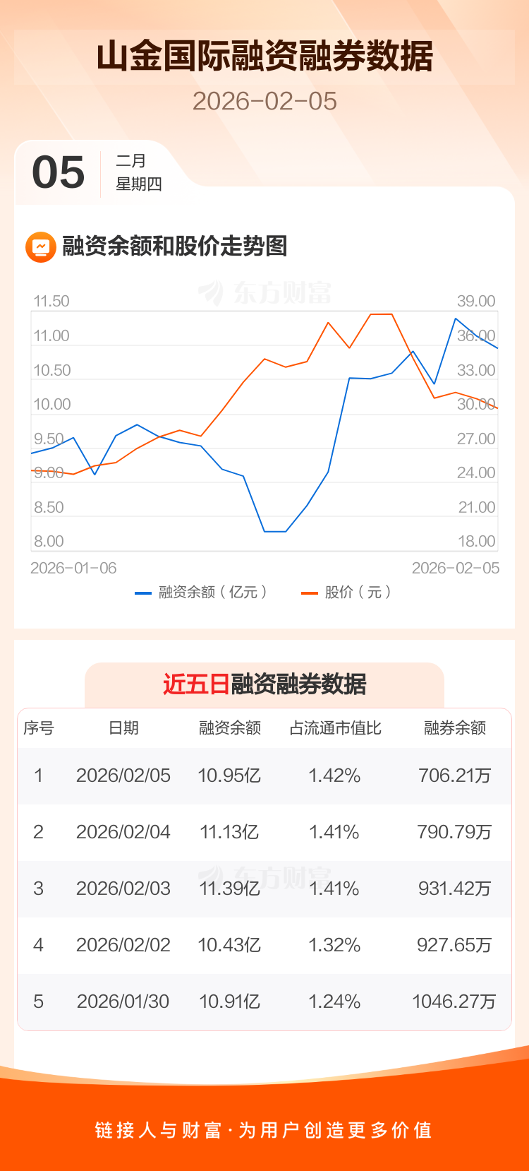 交易所最新数据显示,山金国际于2026年2月5日获融资买入1.02亿元,融资偿还1.20亿元,当日融资净偿还1853.53万元。目前,该股融资余额10.95亿,占流通市值比例为1.42%。