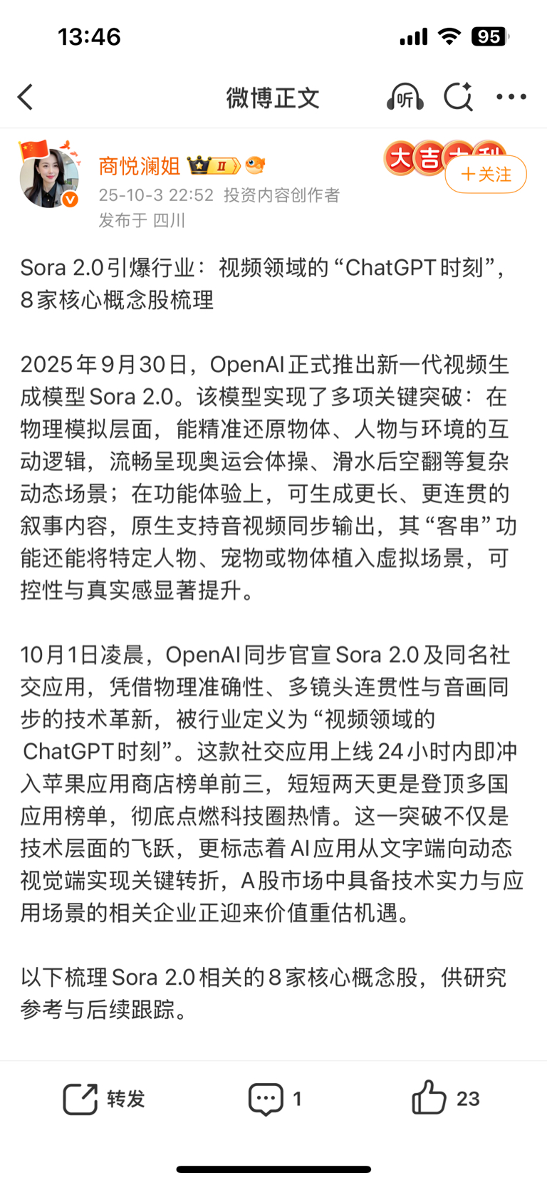 • Sora 2.0关联逻辑:聚焦算力基础设施硬件搭建。作为国内服务器龙头企业,以AI服务器为核心产品,市场份额领先,可为Sora 2.0的大规模训练、推理及应用落地提供硬件框架支撑。