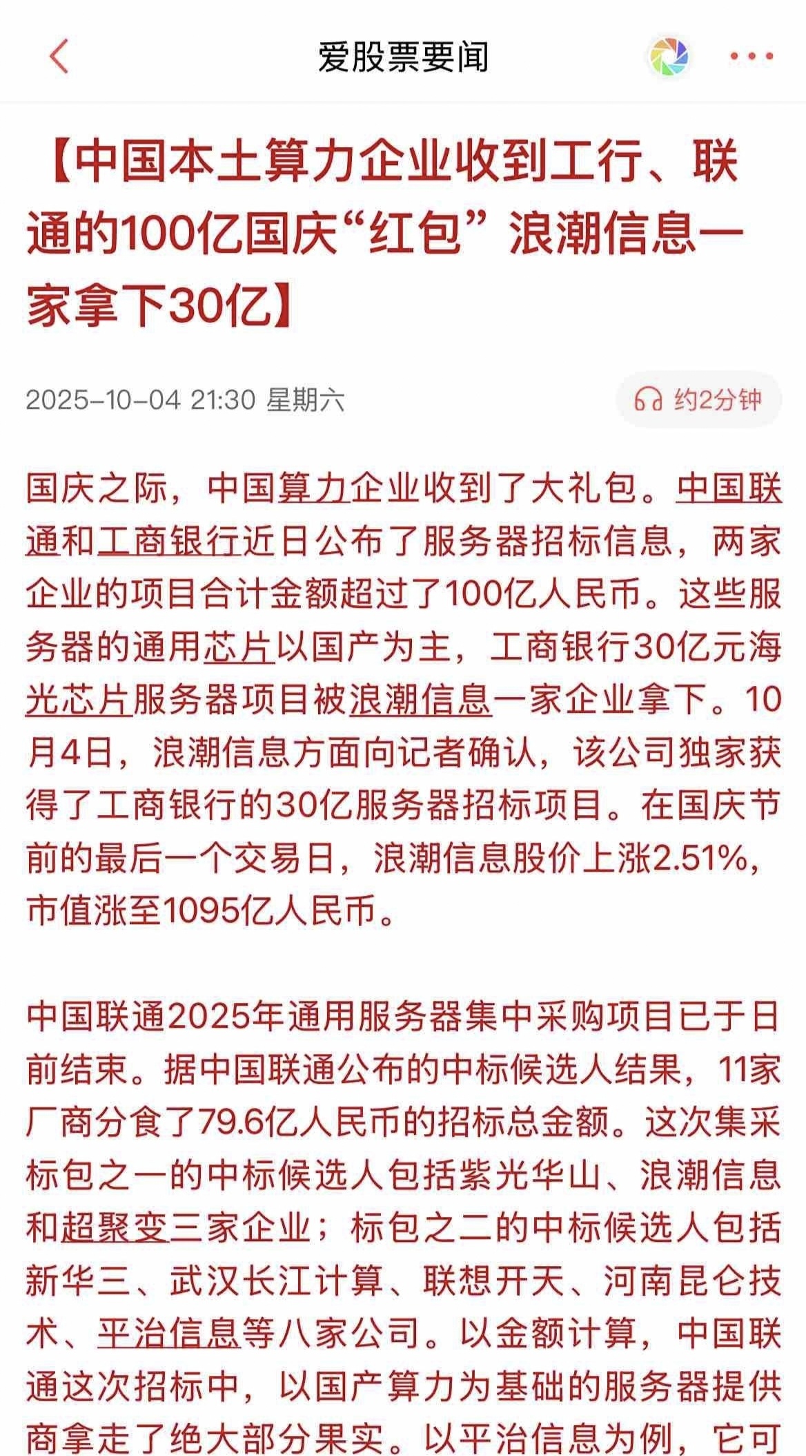 $浪潮信息(SZ000977)$ 浪潮真的强,一家拿下