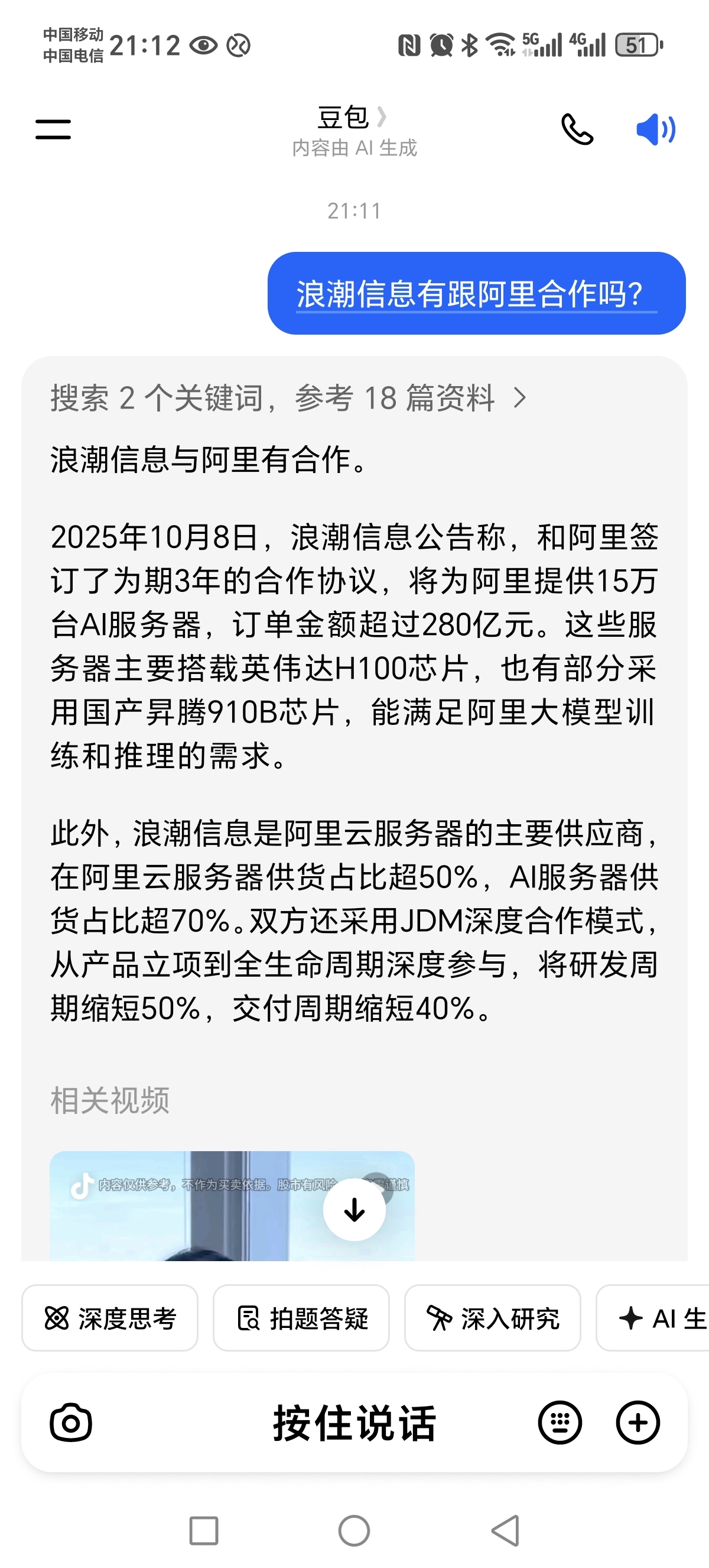 $浪潮信息(SZ000977)$ $浪潮信息(000977)$ 10月8日浪潮信息与阿里的合作