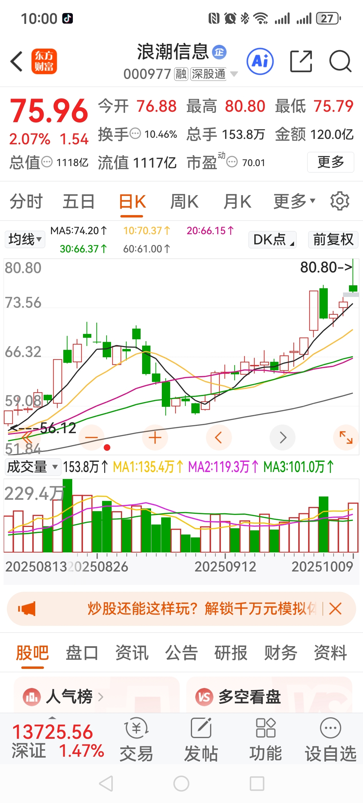 $浪潮信息(SZ000977)$ 机构趋势票,进二退一。5日线低吸,不要追高打板。