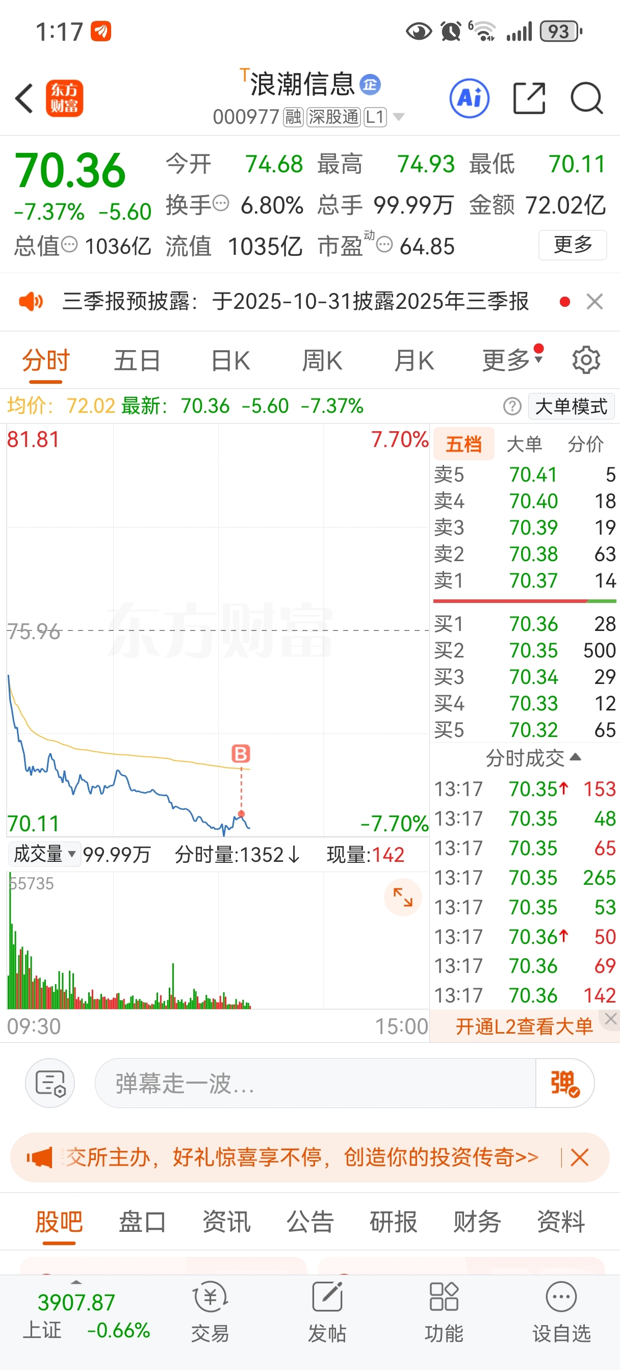 $浪潮信息(SZ000977)$ 70.7加了一点,昨天76.66.卖的