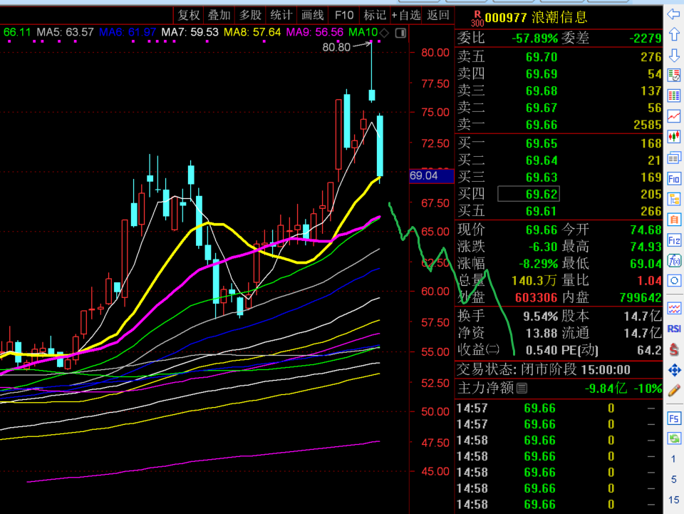 浪潮信息在80元已见到今年大顶,周一预测低开百分之6收盘跌停板