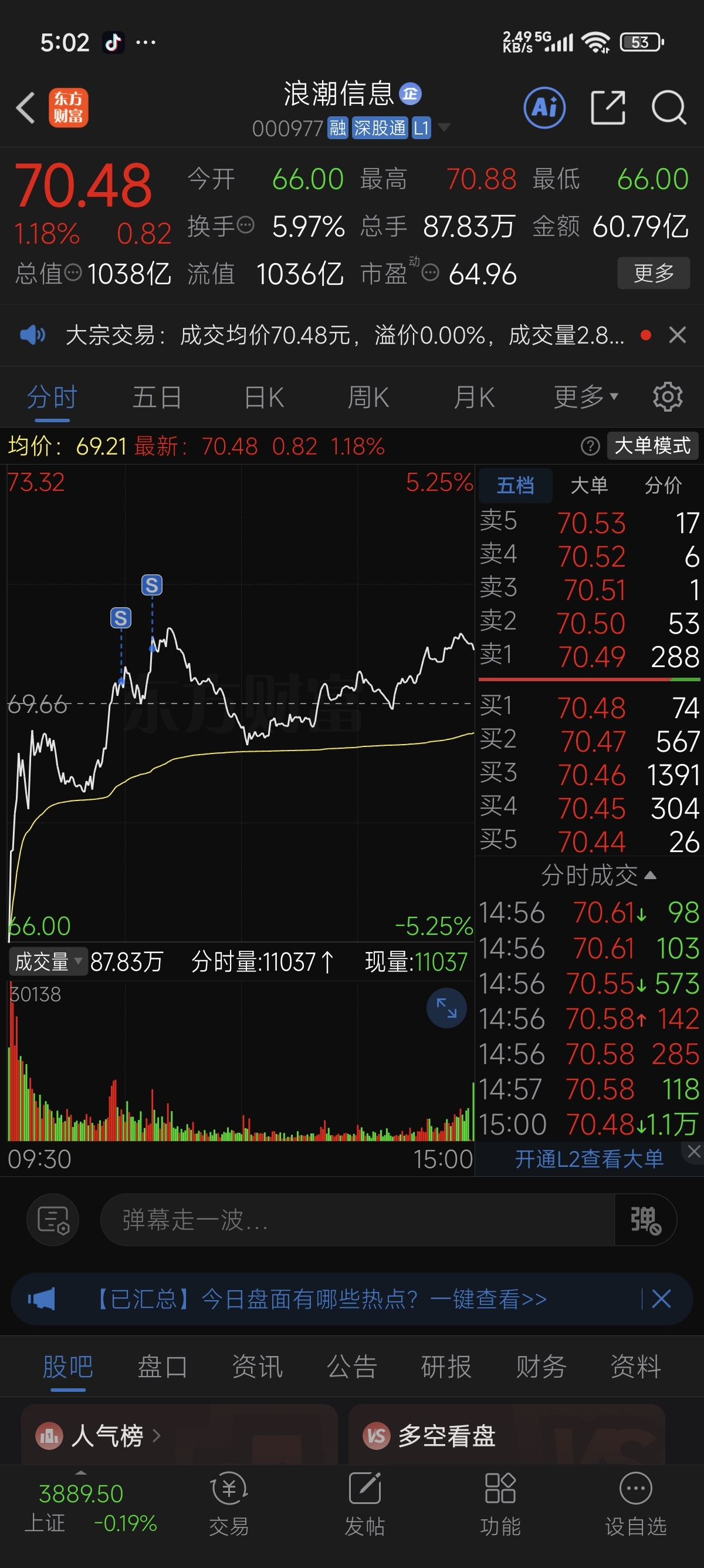 $浪潮信息(SZ000977)$ 清仓了,赚一个点!