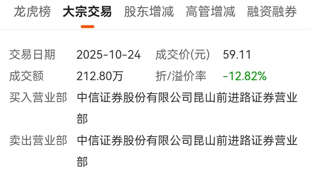 这个大宗交易谁能看懂,自己折价卖给自己。