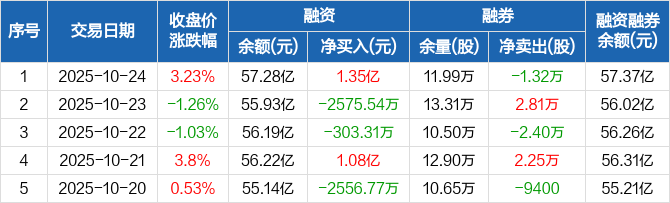 浪潮信息:融资净买入1.35亿元,融资余额57.28亿元(10-24)