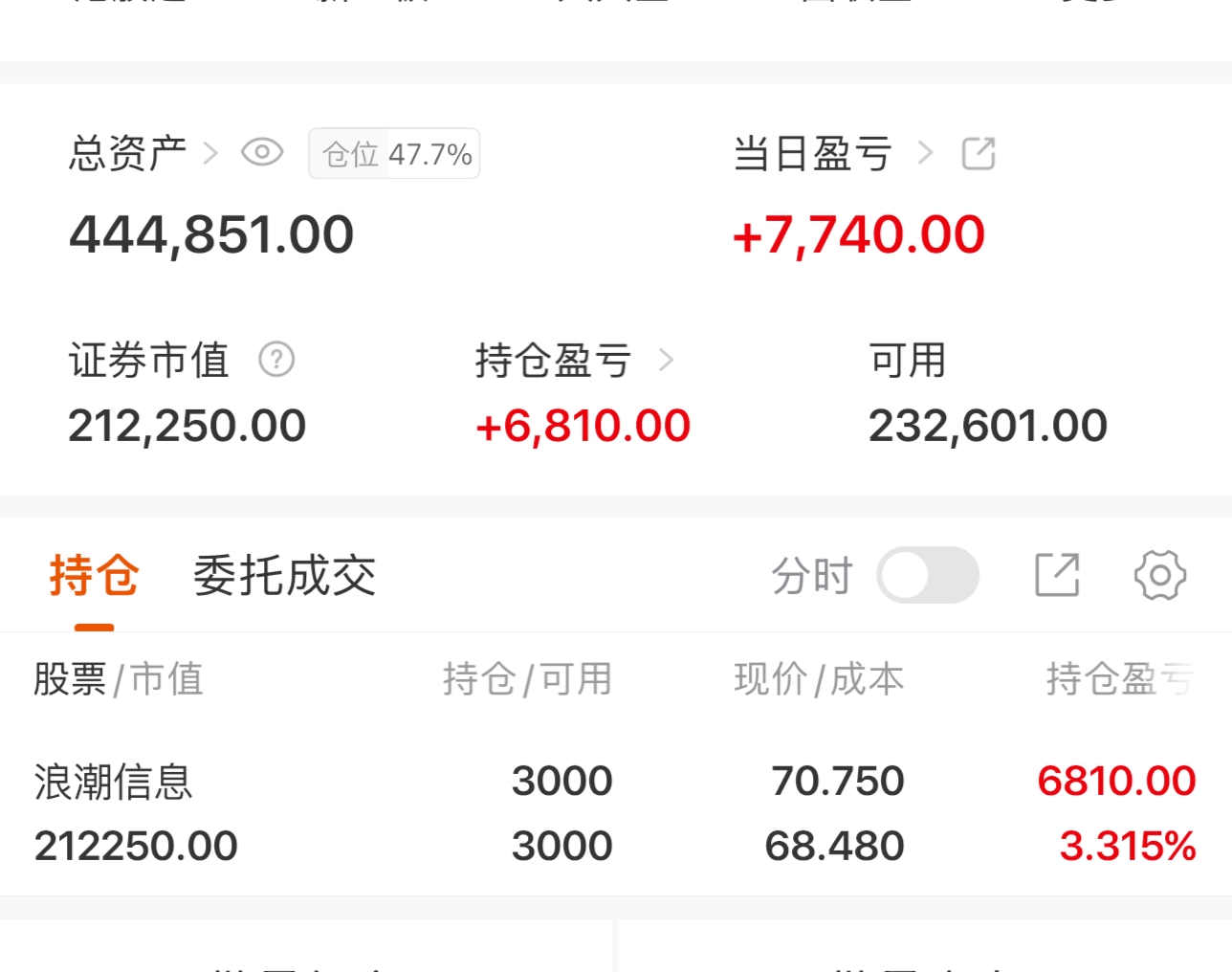 20w再启炒股,实现财务自由之路,分享第140天。新开仓000977浪潮信息心态