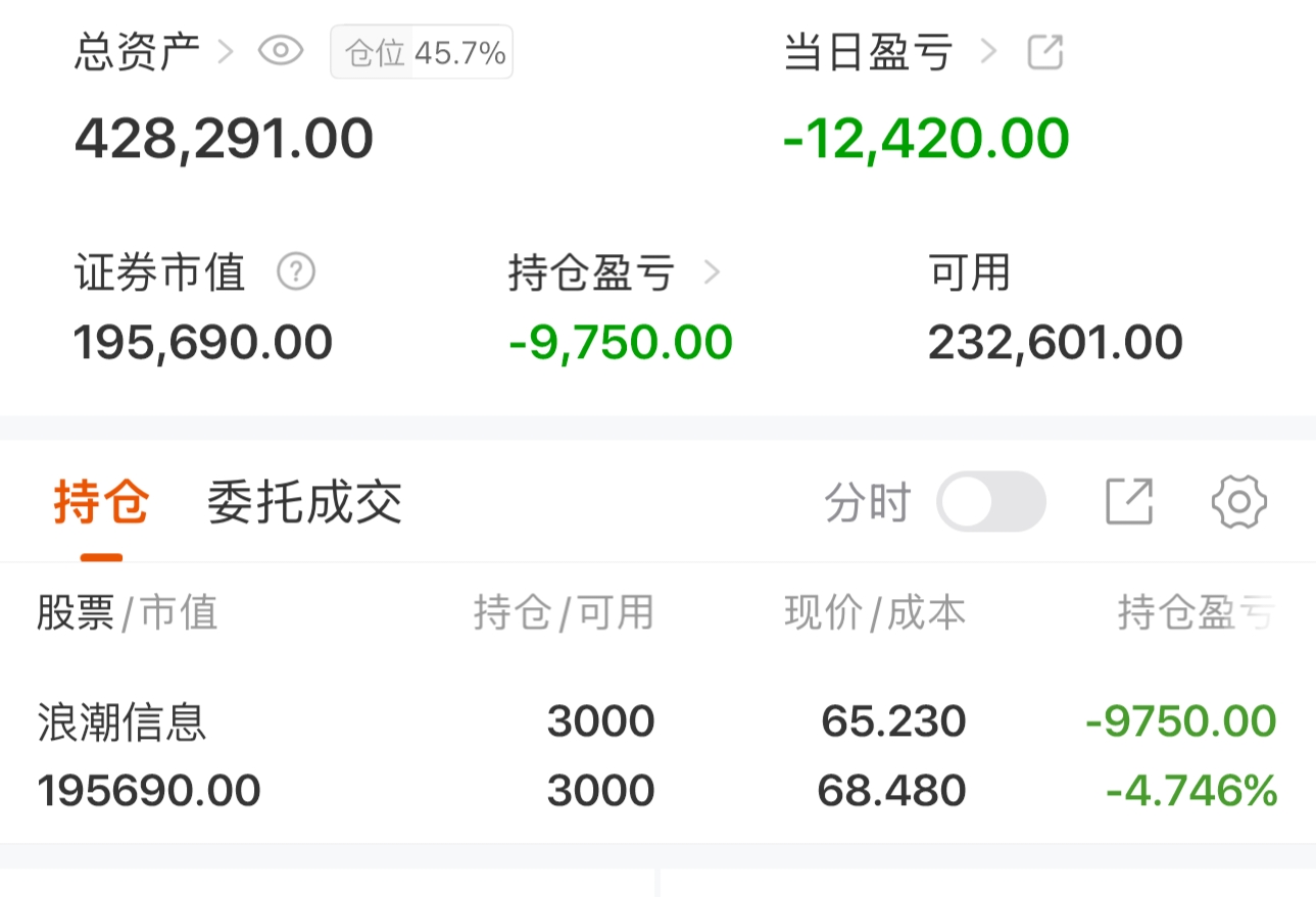 20w再启炒股,实现财务自由之路,分享第142天,难搞。000977浪潮信息。亏