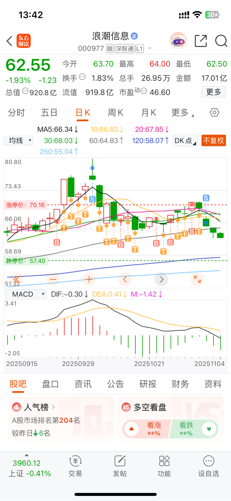 $浪潮信息(SZ000977)$ 万般不舍止盈出局,待到反转之日,苦尽甘来在回头