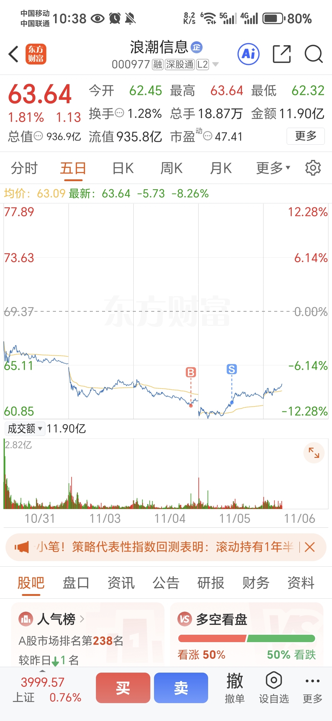 $浪潮信息(SZ000977)$ 麻烦回到63.40去,谢谢,我卖了你涨就行
