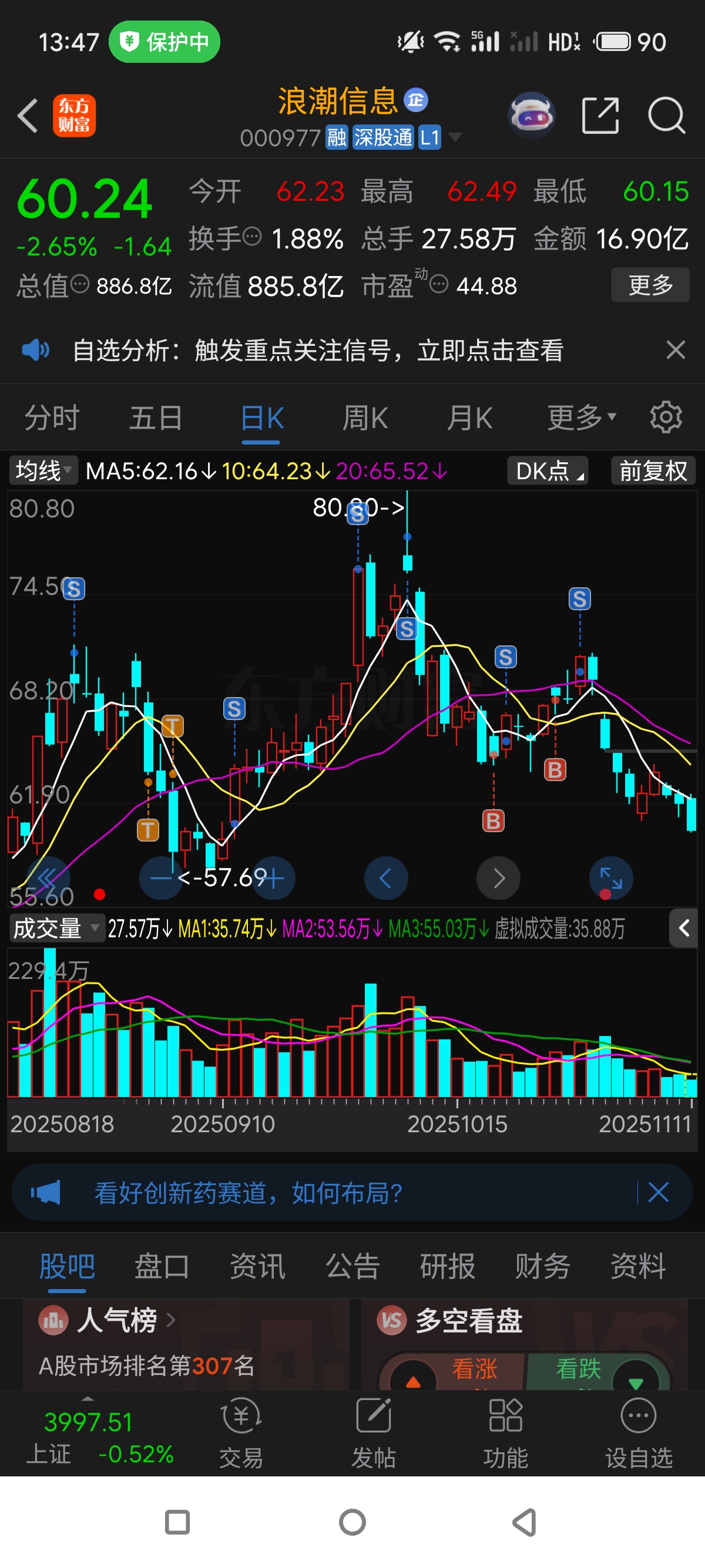 $浪潮信息(SZ000977)$ 哈哈哈哈 我求求你了 赶紧破60 然后到58 我就可以把卖的全都买回来了