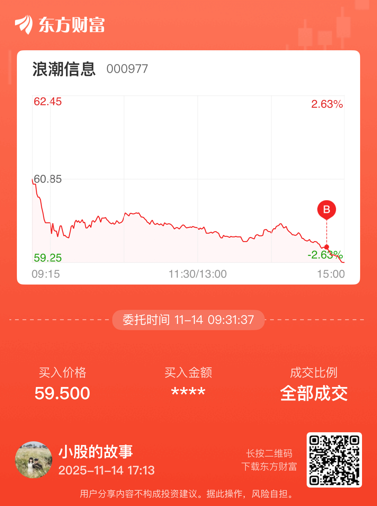 委托标的:买卖方向:笔记:逐步建仓。浪潮周一已经被教育过一次