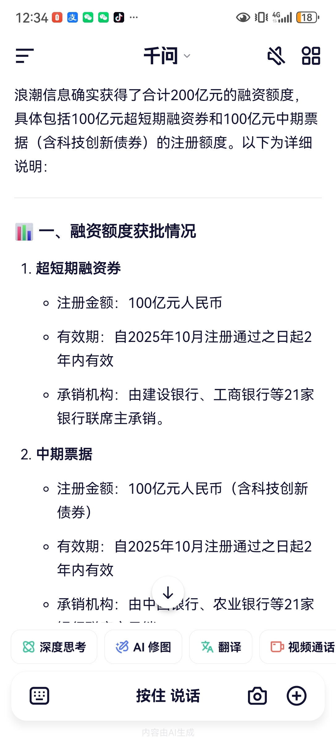 浪潮信息确实获得了合计200亿元的融资额度,具体包括100亿元超短期融资券和100亿元中期票据(含科技创新债券)的注册额度。