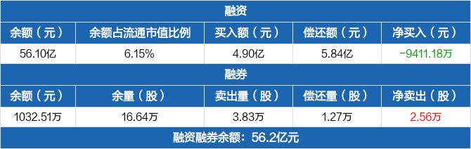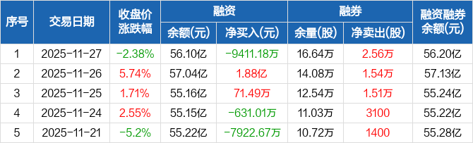 浪潮信息:融资净偿还9411.18万元,融资余额56.1亿元(11-27)