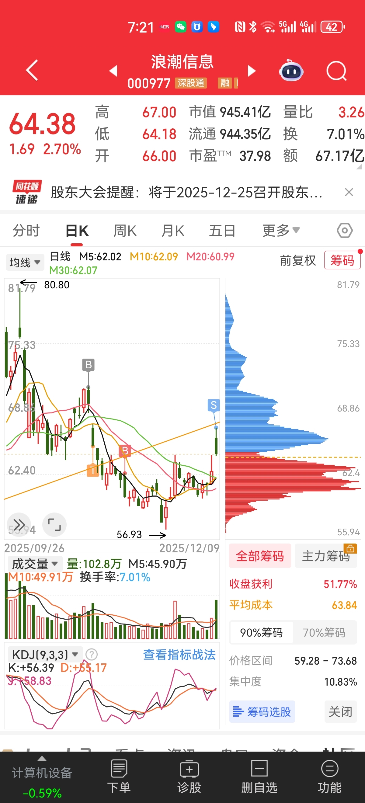 $浪潮信息(SZ000977)$ 70多买的,套了一个多月,补过一次,补成65,感谢主力给解套,还给了利息钱