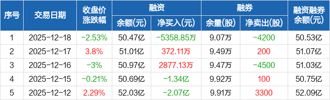 浪潮信息:融资净偿还5358.85万元,融资余额50.47亿元(12-18)