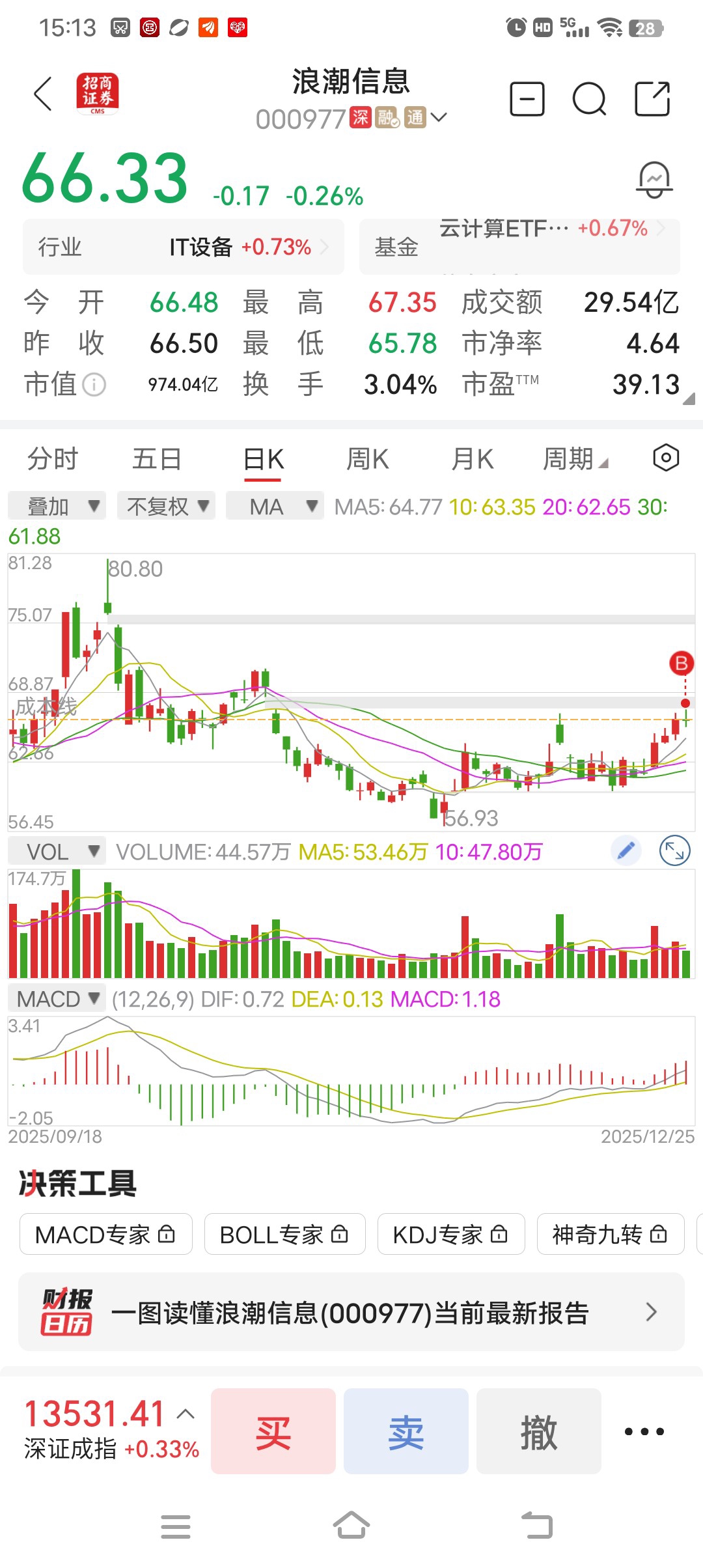 $浪潮信息(SZ000977)$ 今天冲动了,调仓换股,进来,看明天能不能吃肉,,,收盘价66.33,很吉利,,,,也该涨停了,,,,墨迹这么久,今天洗盘结速,明天起飞,,