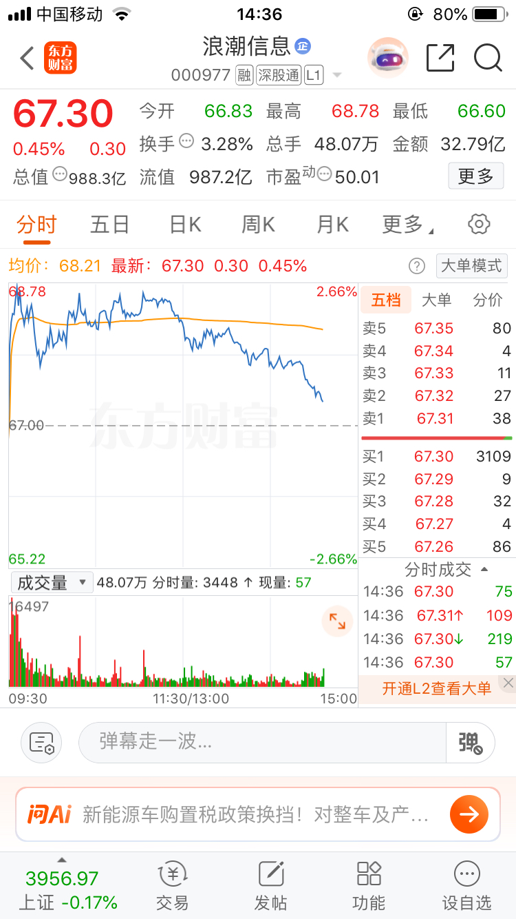 $浪潮信息(SZ000977)$ 对手盘出现,看谁的实力雄厚,67.30元强弱分水岭!试目以待!