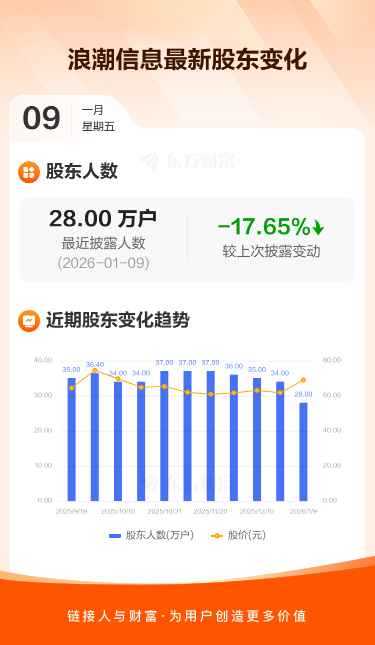 浪潮信息:截至1月9日最新股东户数28.00万户,较上期减少17.65%