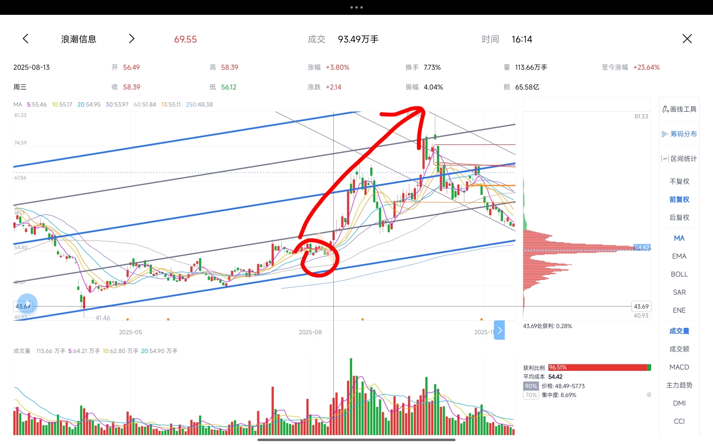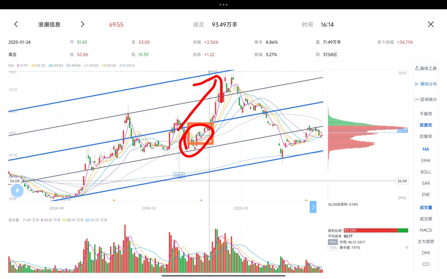 2025年1月份,主力不断吸筹,筹码集中度到了8%左右,然后就是如图所示的走势