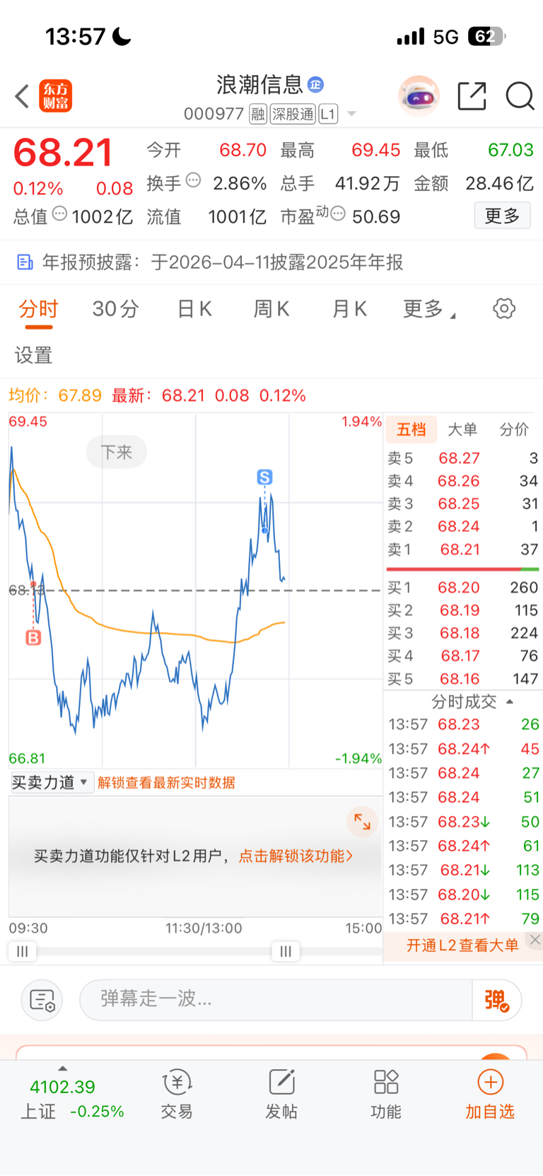 $浪潮信息(SZ000977)$ 68.20这个位置可以接受,别再跌了,再跌接下来的日子很不乐观