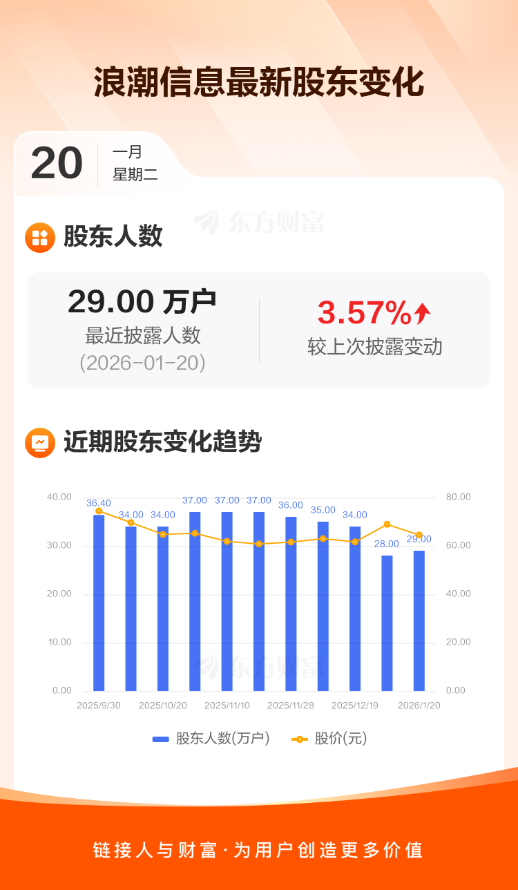 浪潮信息:截至1月20日最新股东户数29.00万户,较上期增加3.57%