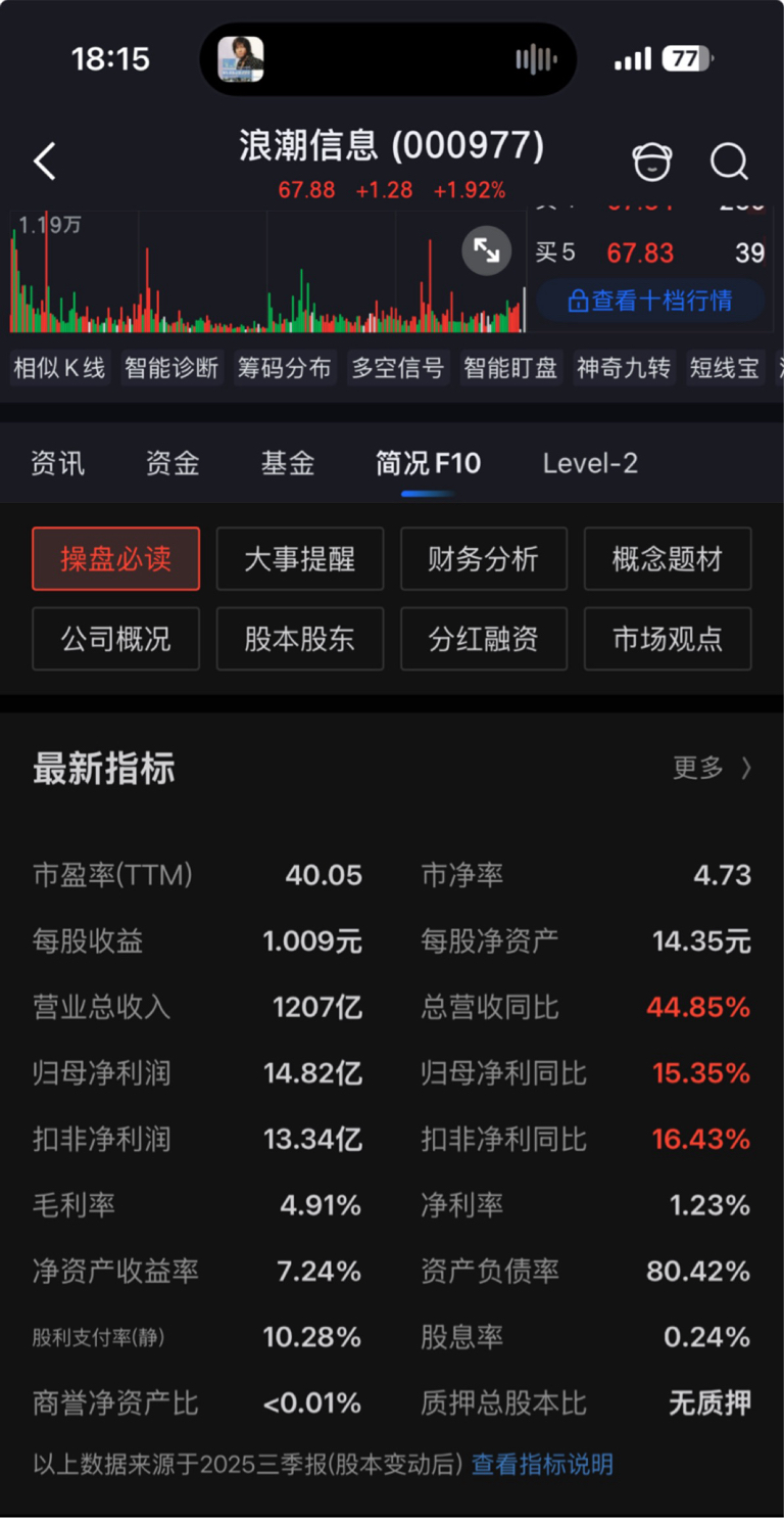 $浪潮信息(SZ000977)$ 1个点净利的浪潮信息就别去别的科技股吧里碰瓷了,身为一个组装厂1个点的净利率都比不上工业富联这个组装厂3个点的净利率,更别提别的科技股了,浪潮资产负债率也高的离谱!一个地方国企动不动就去碰瓷产业链齐全的央企中科曙光,且中科曙光净利率是浪潮的10倍!老实在自己吧里带着比什么都强!